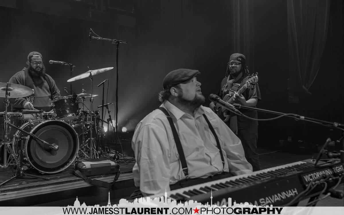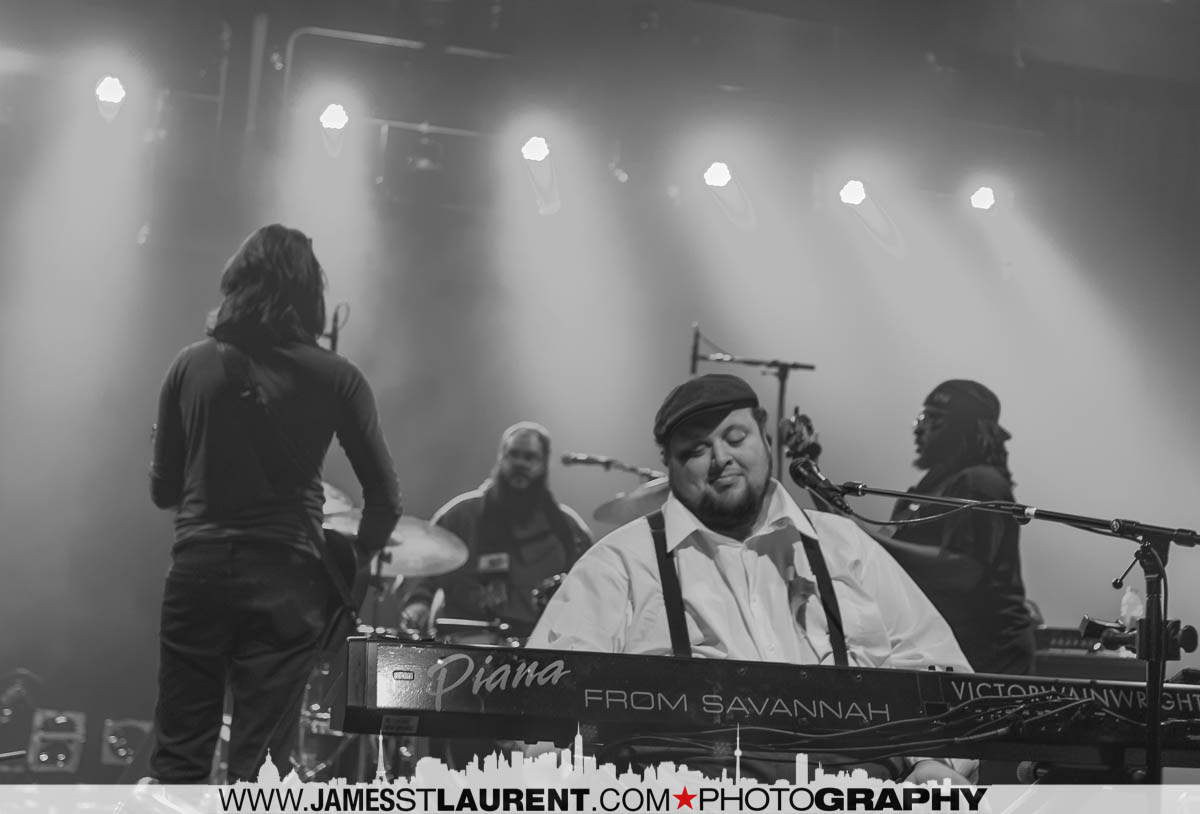 While on route to the soundcheck for Victor Wainwright and The Wildroots, I was listening to the Homerun Show on CBC FM, (yes, I listen to CBC radio) the host, Sue Smith was talking about “the best bets” for shows to catch. They start talking about …. Victor Wainwright! Funny coincidence I thought. At that point I was on Papineau just north of Sherbrooke cueing up for the Jacques Cartier Bridge. In my rear view mirror, I saw a large Mercedes van coming up to merge in front of me – no problem. As the van starts pulling in front of me I notice the large black & white image of a musician at a keyboard. Then I notice the name in large white lettering , “Victor Wainwright”! Then in perfect timing as the van smoothly merges into my lane in front of me, CBC starts playing one of the songs from Victor”s CD. It was a bizarre moment that probably defies the odds on a “coincidence” calculator. Driving behind Victor”s van, on route to his soundcheck, while CBC is playing one of his songs!!!