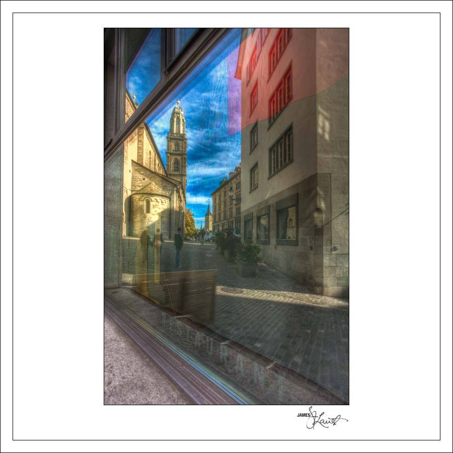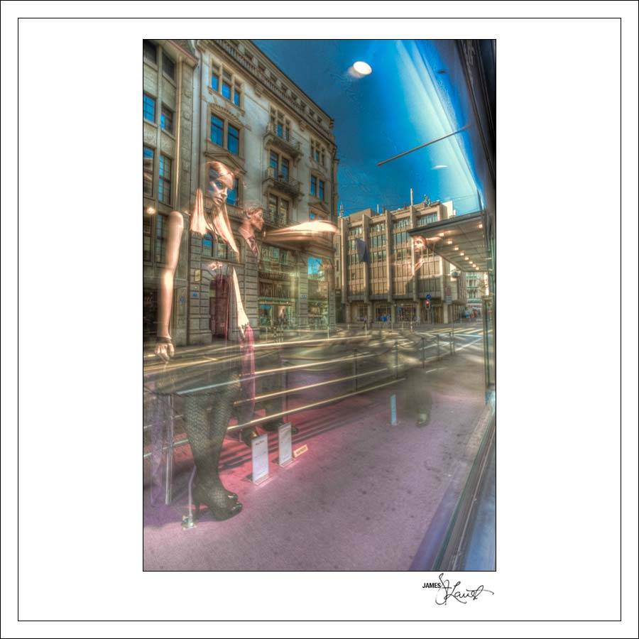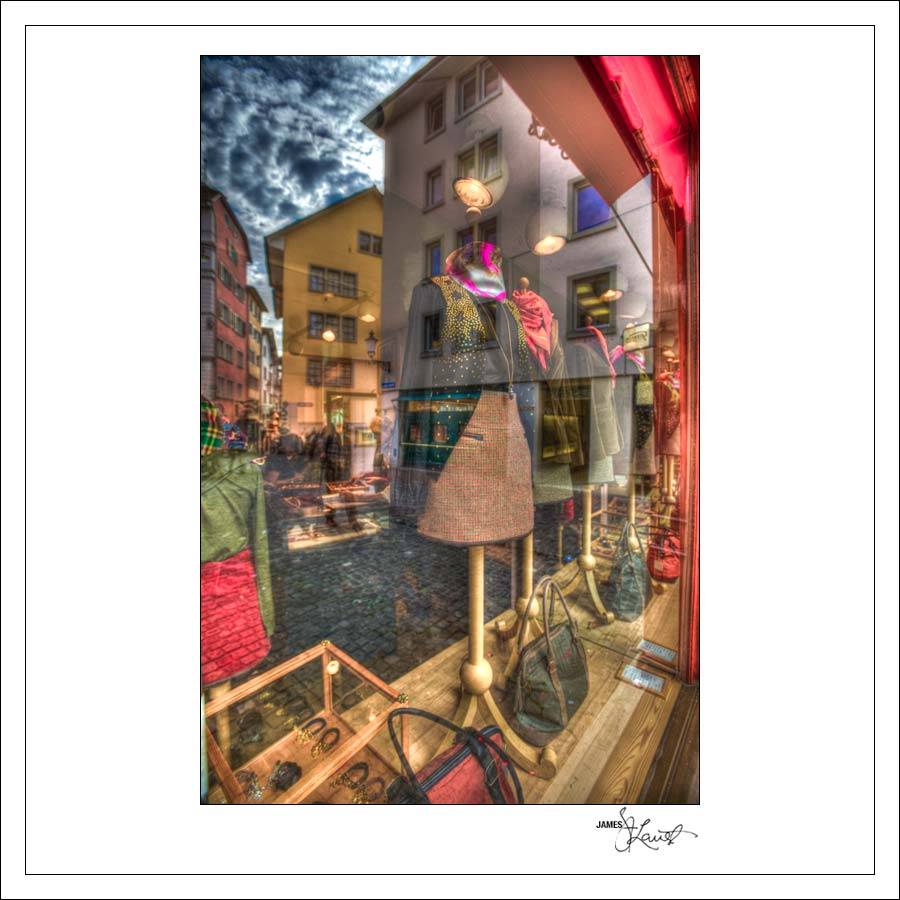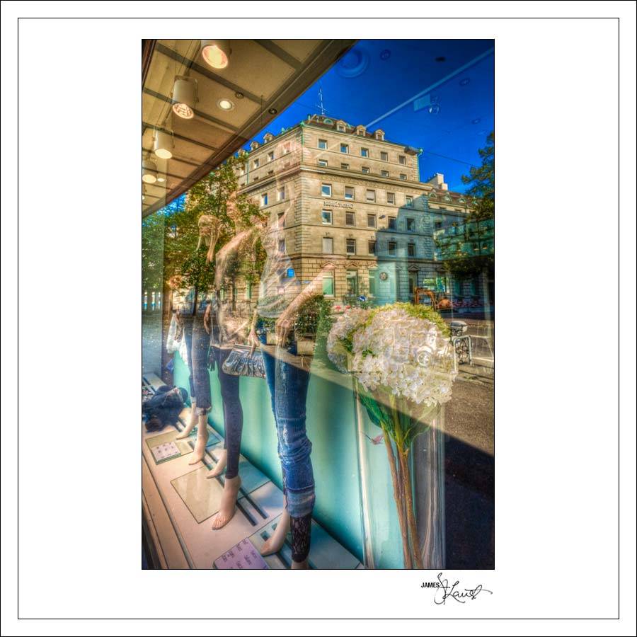 In Zurich, along both sides of the Limmat and the famous luxury shopping street the Bahnhofstrasse – store windows lure passerbys to look behind the reflections frozen on the surreal facades.