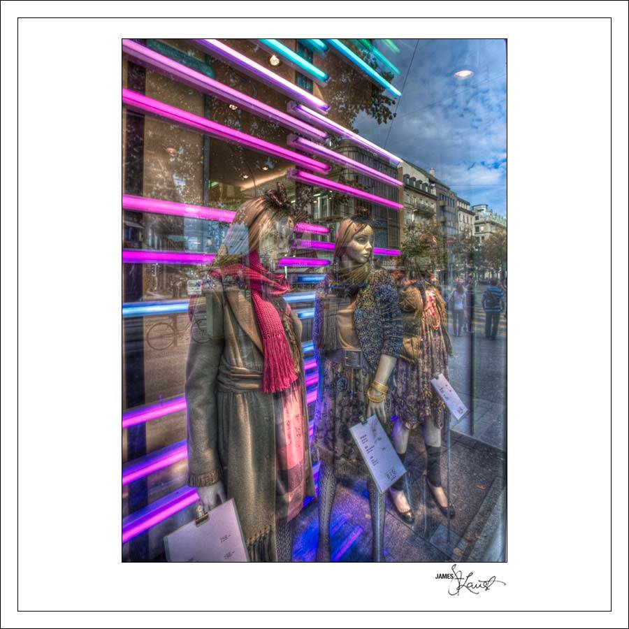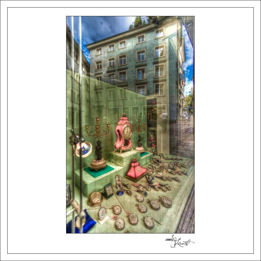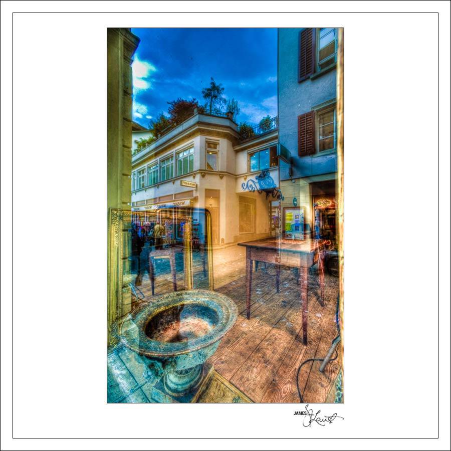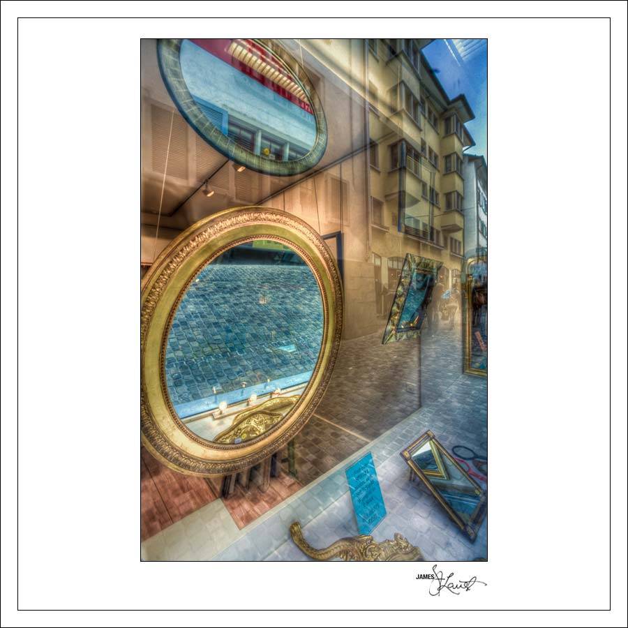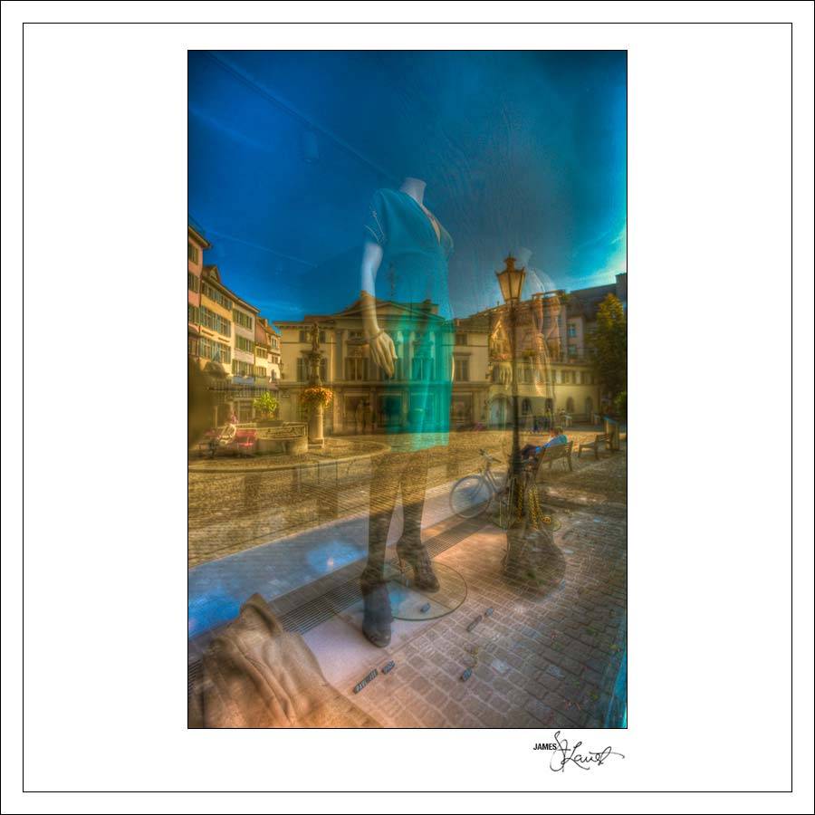 In Zurich, along both sides of the Limmat and the famous luxury shopping street the Bahnhofstrasse – store windows lure passerbys to look behind the reflections frozen on the surreal facades.